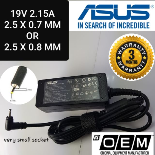 Asus Laptop Charger Adapter 19v 2 1a Tip Size 2 5 0 7 Mm Small Pin Shopee Malaysia